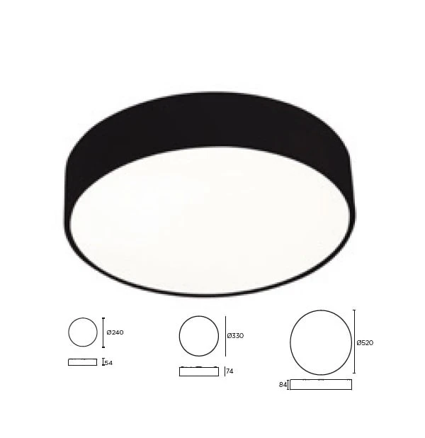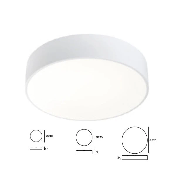 - Ø240mm is 54mm hoog, 12,9Watt (896lm)