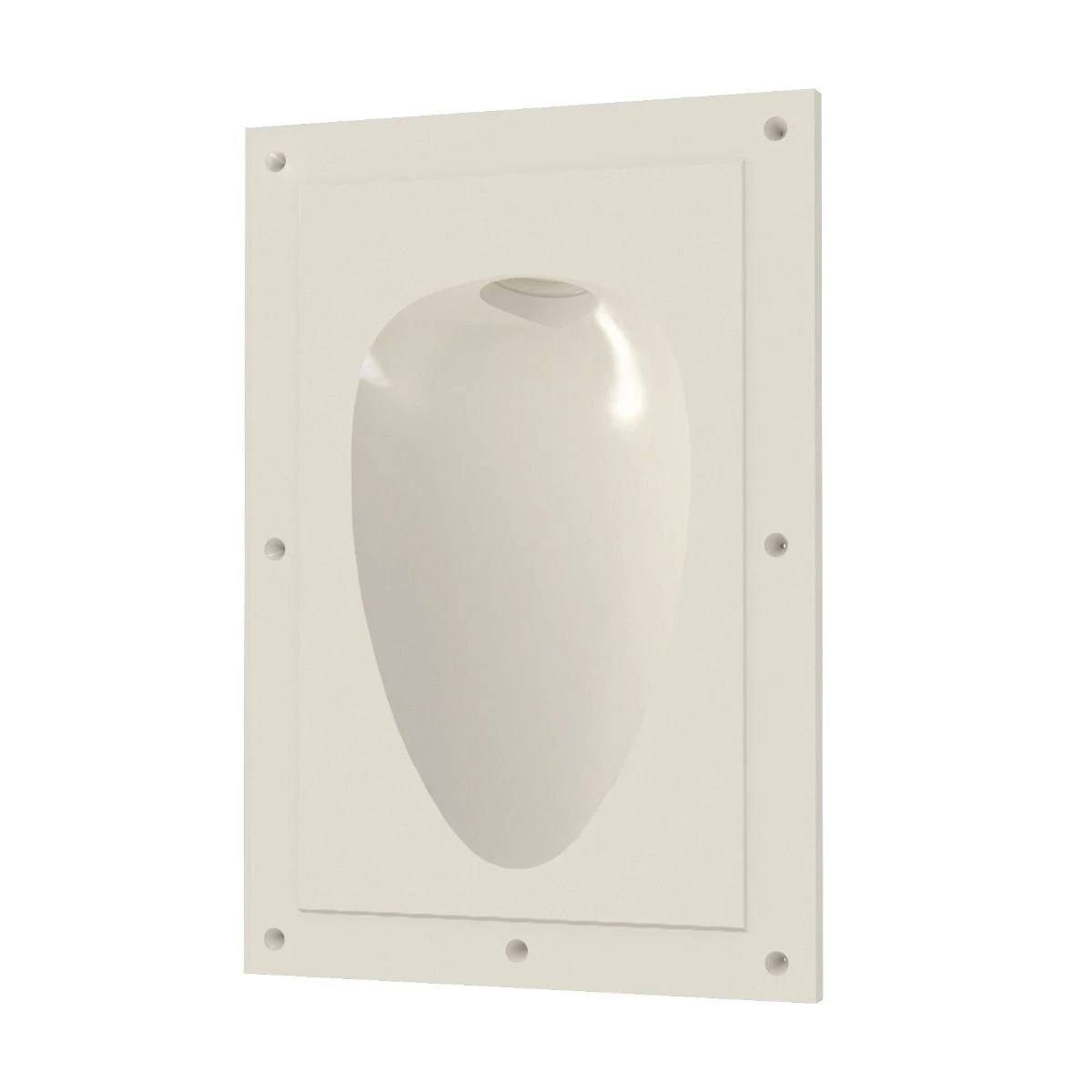 Trimless (randloos) wordt de Flame ingestuct, is vervaardigd van overschilderbaar gips en laat na inbouwen een zichtbare ovale lichtopening van 175mm hoog om een vloer, traptrede of plafond aan te lichten.