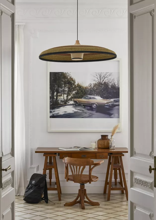 De Grass hanglamp extra large heeft een diameter van 100 centimeter en is 24 centimeter hoog. De maximale kabellengte is 220 centimeter. De lamp heeft een E27 fitting, de lichtbron wordt niet meegeleverd. Het materiaal van de lamp is handgevlochten abacavezel. Hij is beschikbaar in diverse kleuren.