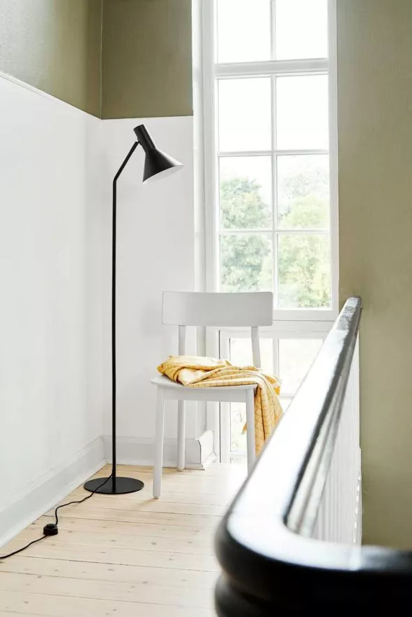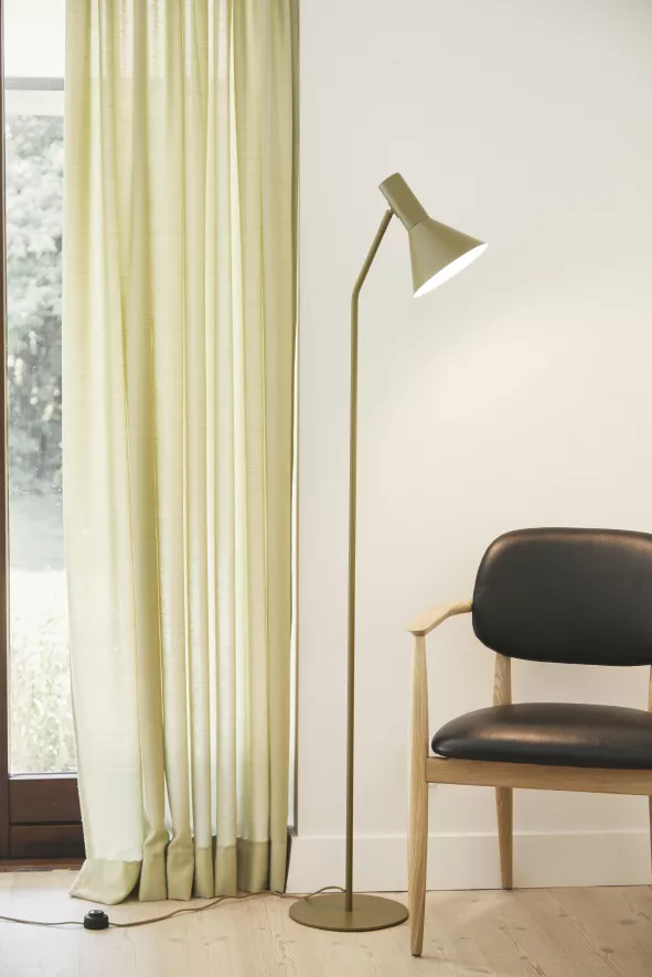 Dit is de LYSS vloerlamp van het merk Frandsen. De metalen vloerlamp is 137 centimeter hoog en 25 centimeter breed. In de lamp zit een E14 fitting voor een lichtbron met een maximaal wattage van 40. De lichtbron wordt niet meegeleverd. Het snoer is 300 centimeter lang en voorzien van een drukknop waarmee je de lamp kunt bedienen. De lamp is verkrijgbaar in drie kleuren: wit, zwart en amandel.