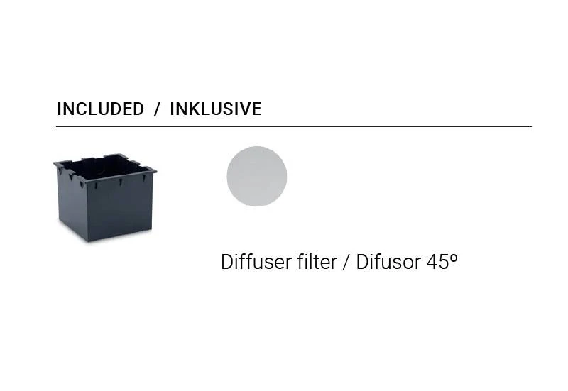 - Bijgeleverd: 45 graden filter en grondinbouwbehuizing