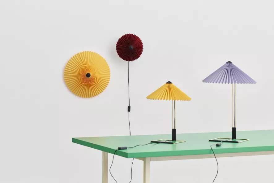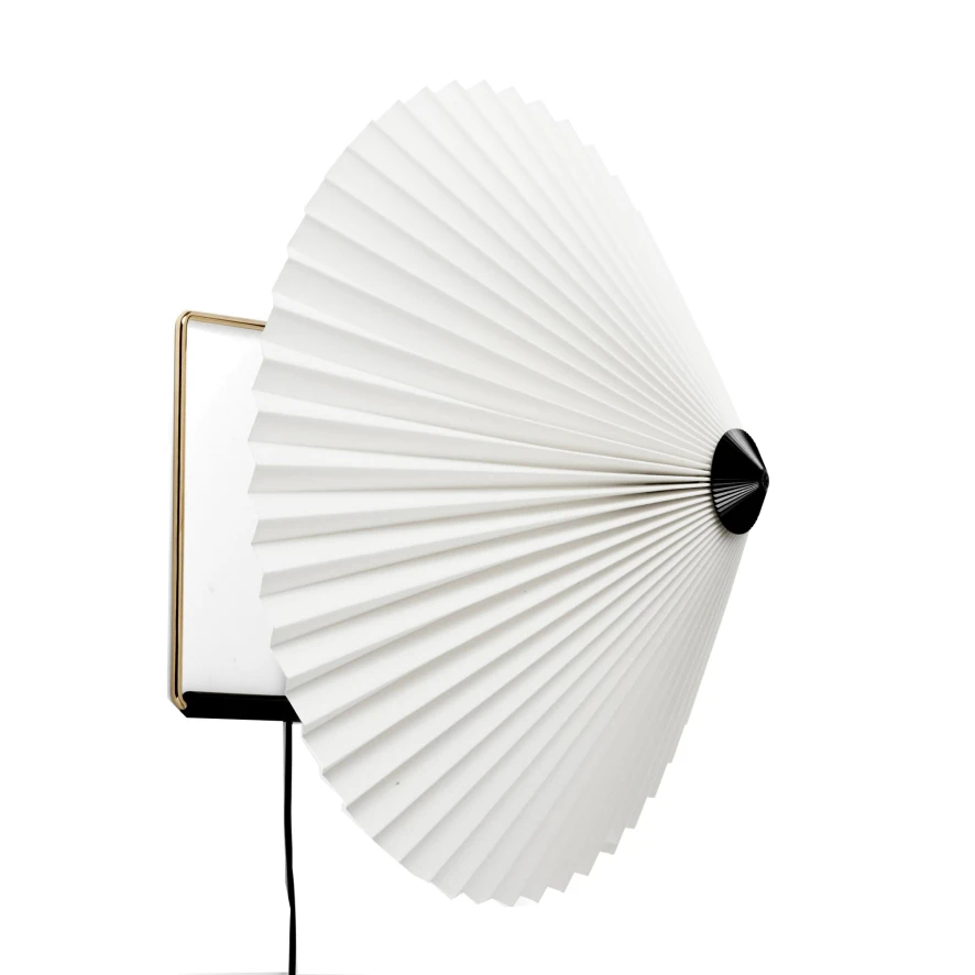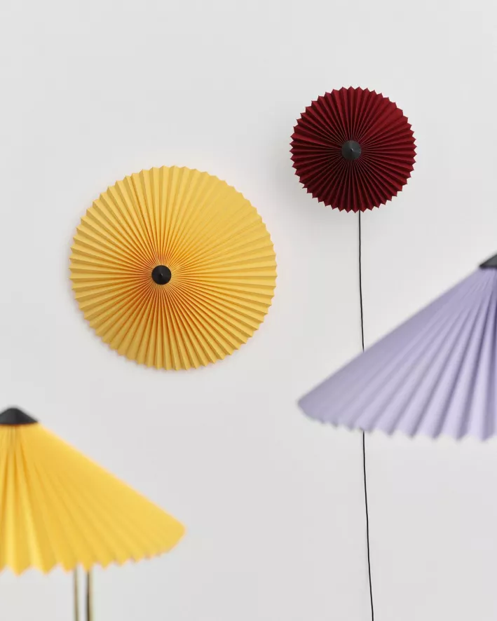 De Matin wandlamp 38 van HAY heeft een diameter van 38 centimeter, een diepte van 25 centimeter en een hoogte van 25 centimeter. Deze wandlamp heeft een basis van staal en heeft een gepolijste messing afwerking. De lampenkap heeft een basis van PVC waaraan geplooide katoen bevestigd is. Het zwarte topje van de lampenkap is gemaakt van voorgevormd ABS. De wandlamp heeft een snoer van zwarte silicone en heeft een lengte van 250 centimeter waaraan de dimmer bevestigd is. De lamp heeft geïntegreerde ledverlichting van 5 Watt, een lichtopbrengst van 150 Lumen en een kleurentemperatuur van 2800 Kelvin (warm wit). De lamp kan zowel naar boven als naar beneden, in een hoek van 45 graden gekanteld worden. De Matin wandlamp 38 van HAY mag alleen binnenshuis gebruikt worden (IP-waarde 20) en is in verschillende uitvoeringen verkrijgbaar.