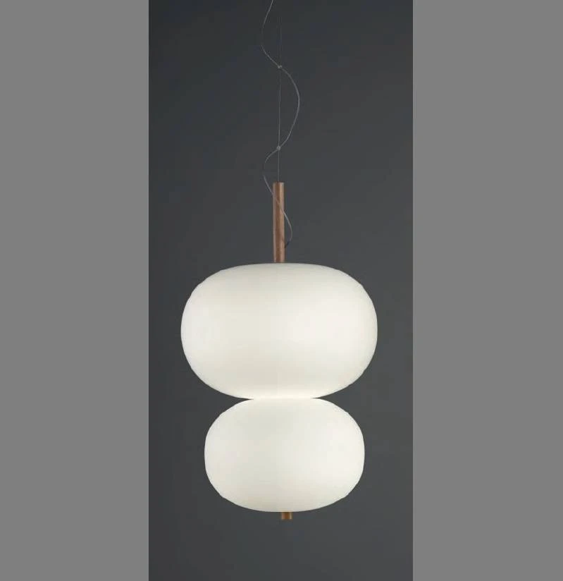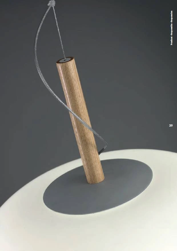 Afgehangen aan een subtiele staalkabel waar langs een transparante stroomdraad loopt naar de witte plafondrozet (Ø176mm).