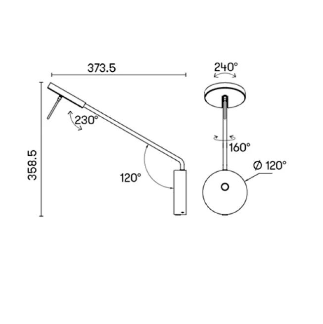 Op de muurrozet zit de touchdimmer, totale hoogte van 359mm en steekt 374mm uit de muur.