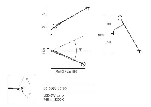 - Lengte vanuit de muur 500 – 1150mm