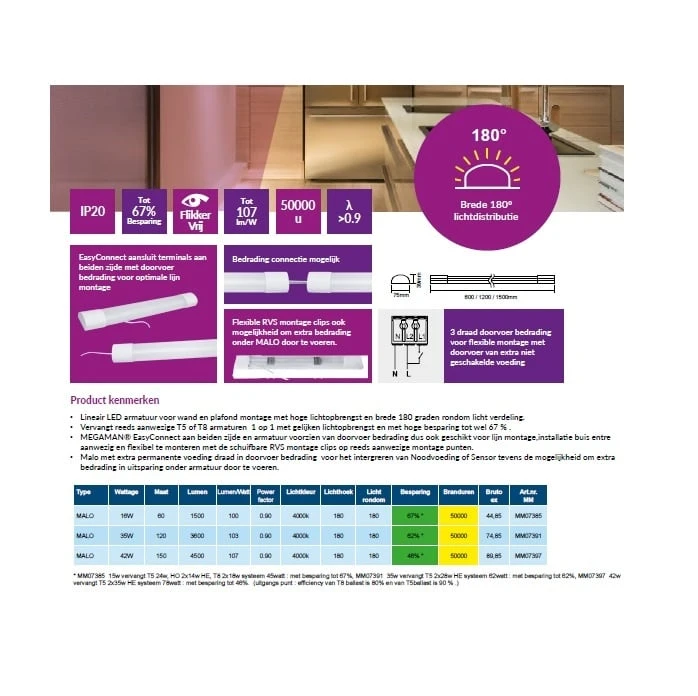 MM07391: 35Watt, Afmeting: 1200 x 75 x 39mm