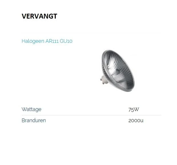 AR111 ledlamp van 10Watt de Dubbele Bundel Techniek, met een druk op de lens wordt de lichtbundel 24 of 45 graden en vice versa.