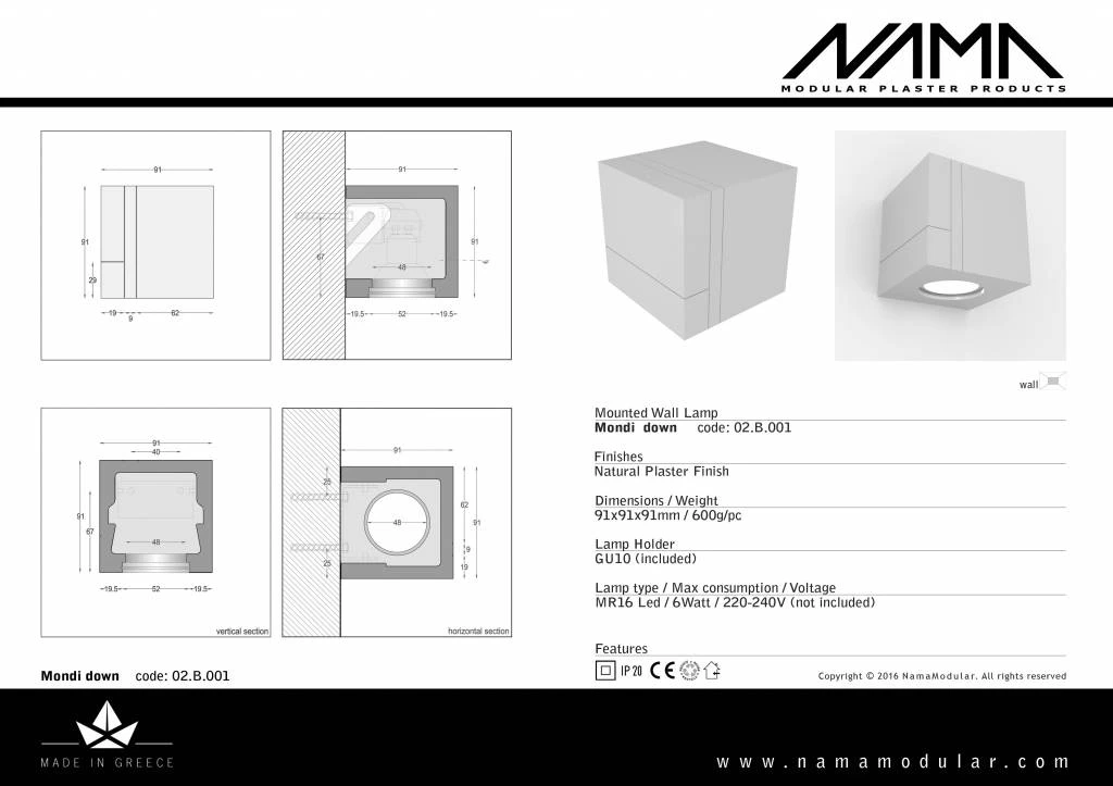 Mondi Down led wandlamp is vervaardigd uit naturel gips en overschilderbaar in de kleur van uw interieur.