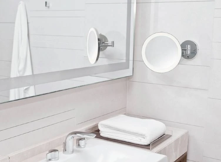 De ronde spiegel van de Reflex vergroot 5x en heeft een diamater van Ø230mm.