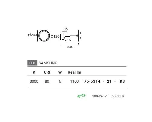 Met 6Watt warm-wit licht (3000K), de 2 chromen armen scharnieren op 3 plaatsen, zodat elke situatie bekeken kan worden.