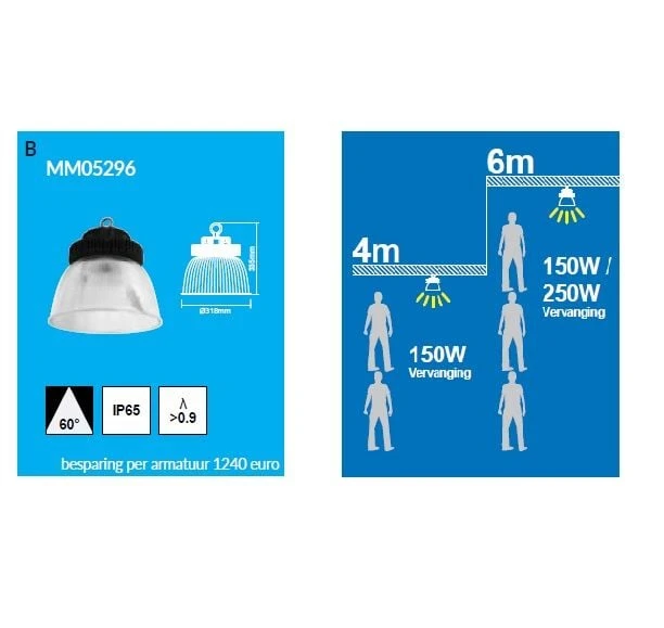- Lumenstroom 3790lm (3000K) 3980lm (4000K)