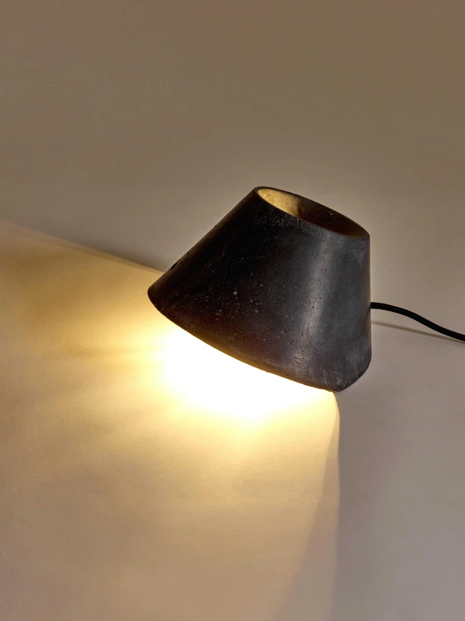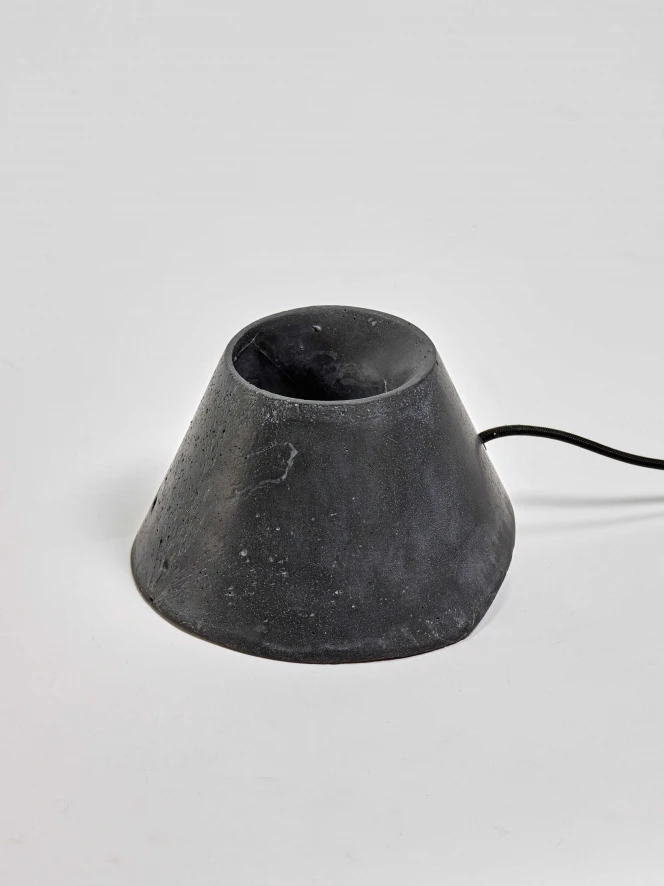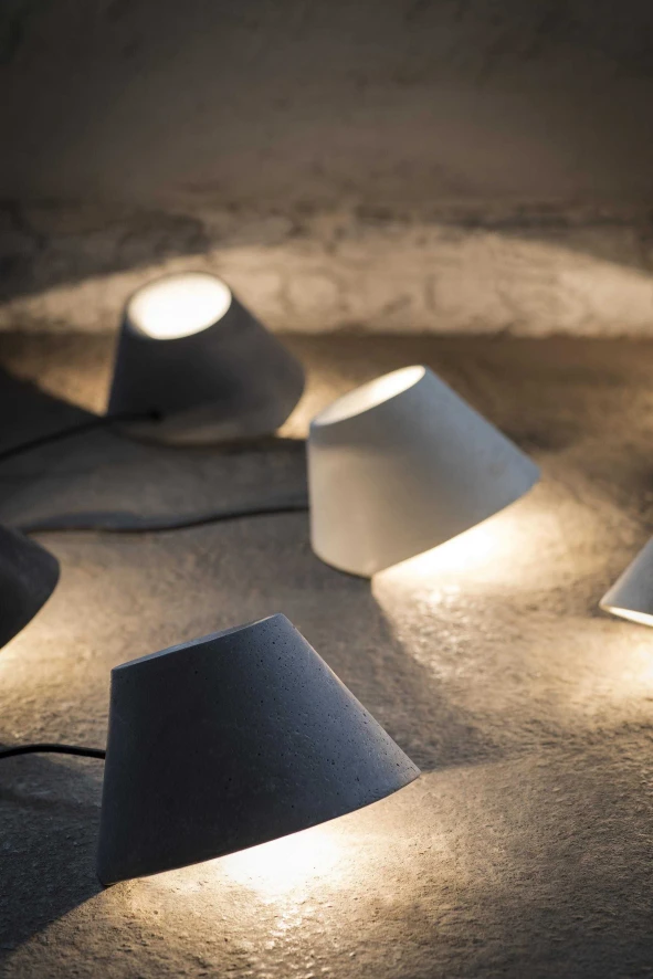 De Eaunophe tafellamp large buiten is 15 centimeter hoog en heeft een diameter van 22 centimeter. De lamp is gemaakt van beton en is verkrijgbaar in 3 kleuren.