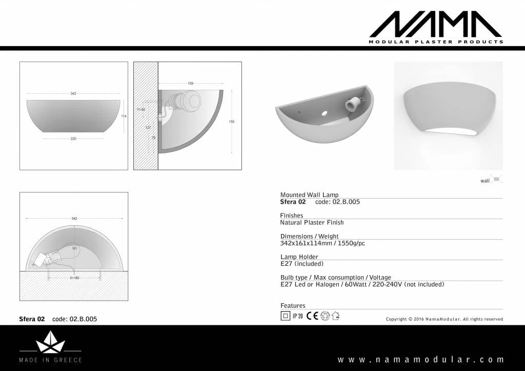 Sfera 02 Up-down led wandlamp is vervaardigd uit naturel gips en overschilderbaar in de kleur van uw interieur.
