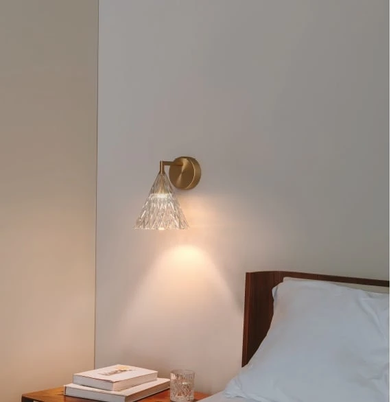 Fraaie wandlamp met een voetplaat van Ø100mm, zodat een muurdoos wordt afgedekt.
